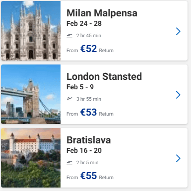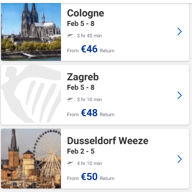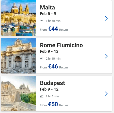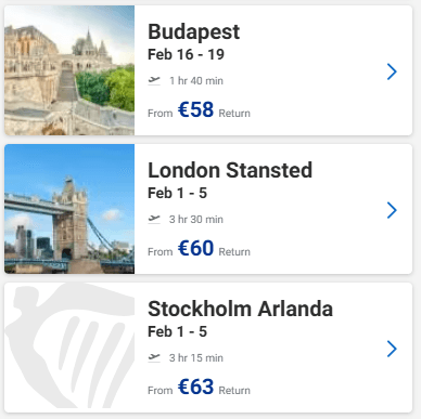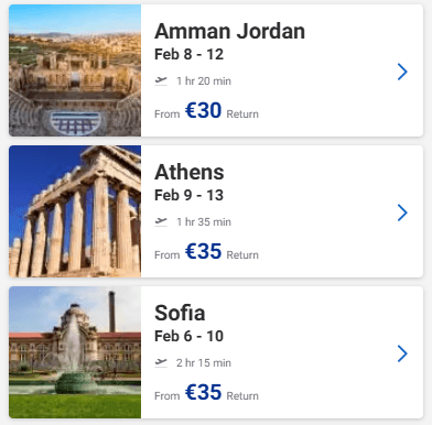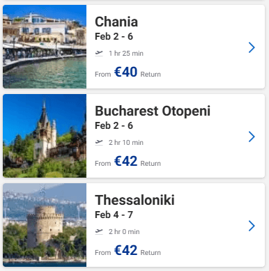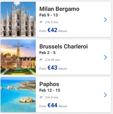 Ευκαιρία να προγραμματίσετε ένα ταξιδάκι στην Ευρώπη! Στο site της Ryanair μπορείτε να βρείτε για το Φεβρουάριο ναύλους από 34€ από Θεσσαλονίκη, 35€ από Αθήνα και 30€ από Πάφο με επιστροφή!