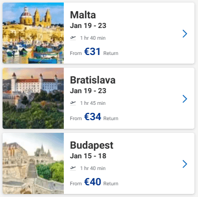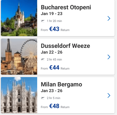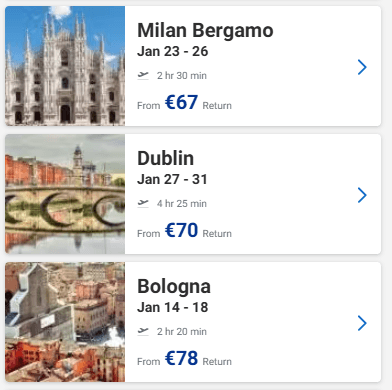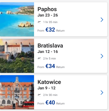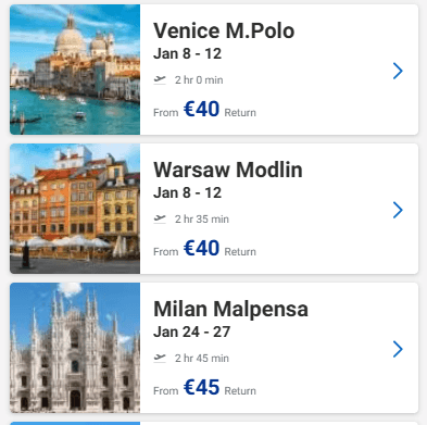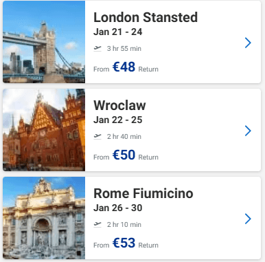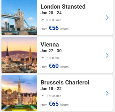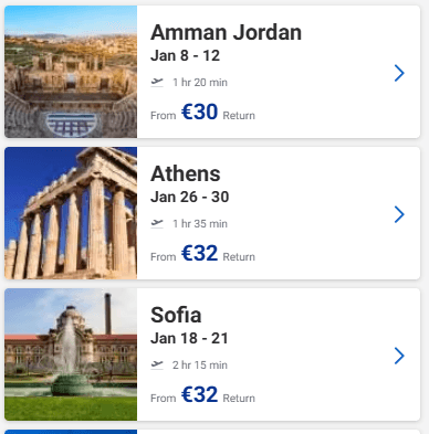 Ευκαιρία να προγραμματίσετε ένα ταξιδάκι στην Ευρώπη! Στο site της Ryanair μπορείτε να βρείτε για τον Ιανουάριο ναύλους από 31€ από Θεσσαλονίκη, 32€ από Αθήνα και 30€ από Πάφο με επιστροφή!