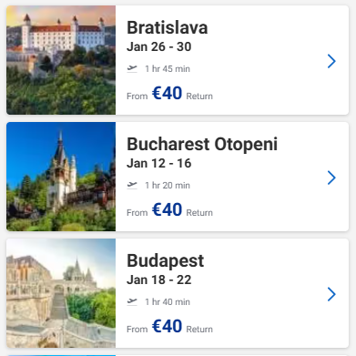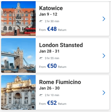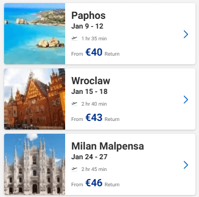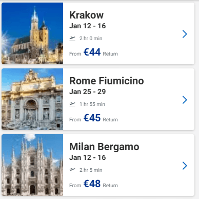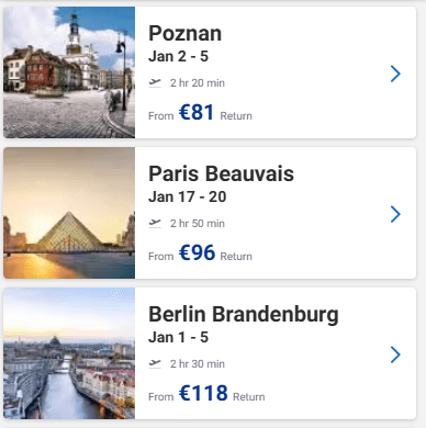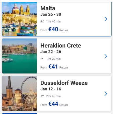Ευκαιρία να προγραμματίσετε ένα ταξιδάκι στην Ευρώπη! Στο site της Ryanair μπορείτε να βρείτε για τον Ιανουάριο ναύλους από 40€ από Θεσσαλονίκη, 40€ από Αθήνα και 36€ από Πάφο με επιστροφή!