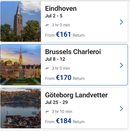 Οι παραπάνω τιμές δεν αφορούν επίσημη προσφορά της εταιρίας, αλλά ναύλους που μπορείτε να εντοπίσετε μέσω του low fare calendar. Αυτό σημαίνει ότι οι τιμές μπορούν να αλλάξουν ανά πάσα στιγμή και ισχύουν τη στιγμή της δημοσίευσης αυτού του άρθρου (16 Απριλίου). Να θυμάστε επίσης ότι οι ναύλοι αυτοί ισχύουν για συγκεκριμένες πτήσεις κι όχι για όλες τις πτήσεις αυτών των προορισμών.