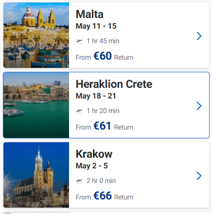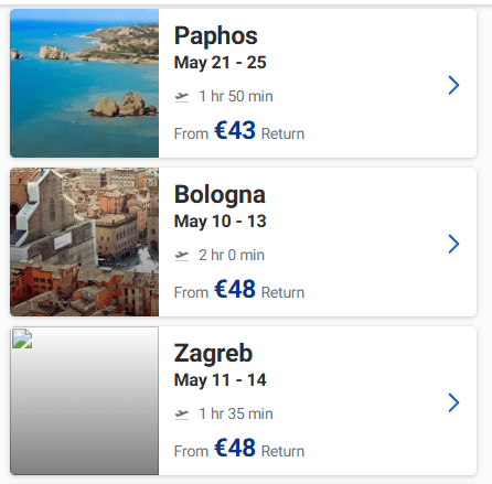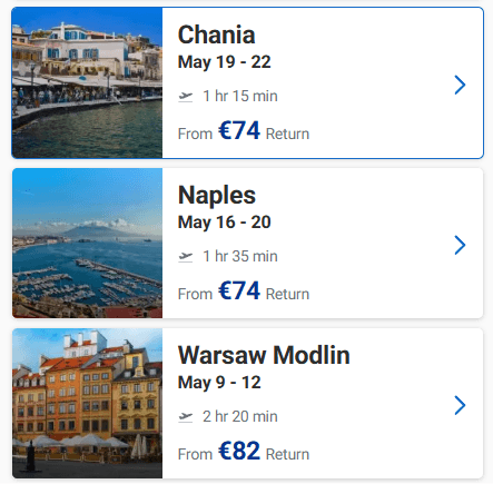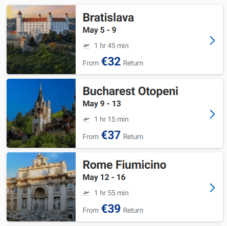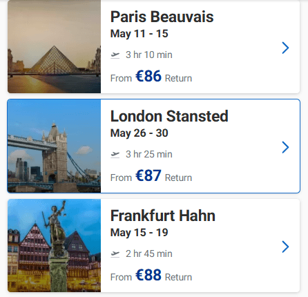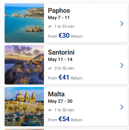 Ευκαιρία να προγραμματίσετε ένα ταξιδάκι στην Ευρώπη! Στο site της Ryanair μπορείτε να βρείτε για το Μάιο ναύλους από 32€ από Θεσσαλονίκη, 30€ από Αθήνα, από 36€ από Χανιά, από 36€ από Ηράκλειο και 30€ από Πάφο με επιστροφή!