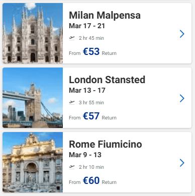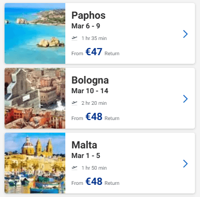 Ευκαιρία να προγραμματίσετε ένα ταξιδάκι στην Ευρώπη! Στο site της Ryanair μπορείτε να βρείτε για τον Μάρτιο ναύλους από 45€ από Θεσσαλονίκη, 47€ από Αθήνα και 33€ από Πάφο με επιστροφή!