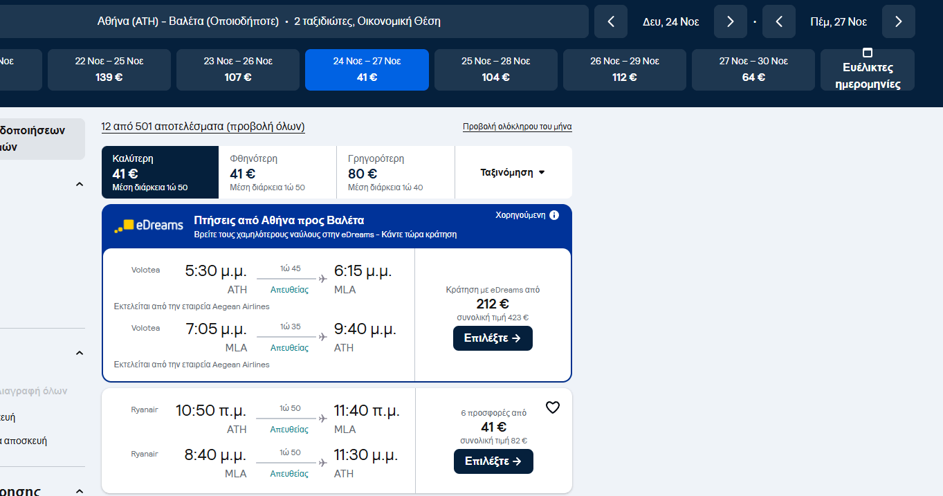 - Αθήνα – Μάλτα 24 Νοεμβρίου