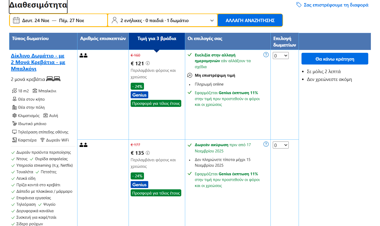 *Για να σας εμφανίζεται η τιμή που βλέπουμε, πρέπει να κάνετε σύνδεση στο site της Booking. Είναι δωρεάν και γίνεται απευθείας μέσω gmail.