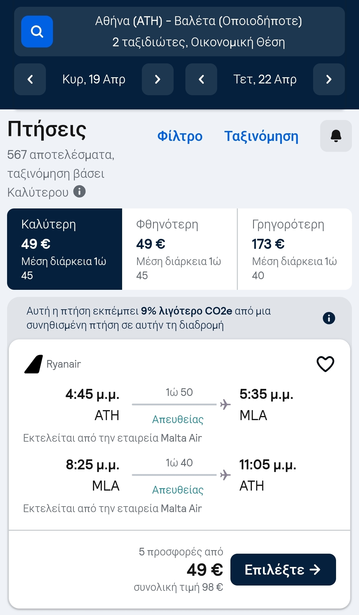 - Μάλτα – Αθήνα 22 Aπριλίου