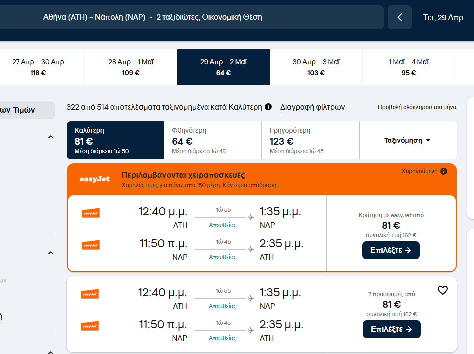 Αεροπορικά εισιτήρια για το ταξίδι στη Νάπολη