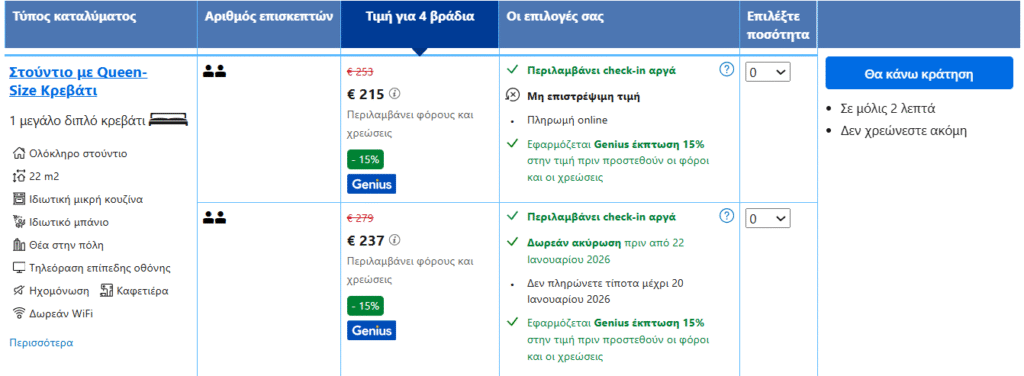 - Η τελική τιμή προκύπτει για κράτηση σε δίκλινο δωμάτιο, χωρίς αυτό να σημαίνει ότι δεν μπορείτε να κάνετε κράτηση για μεγαλύτερα ή περισσότερα δωμάτια, αν είστε περισσότερα άτομα.