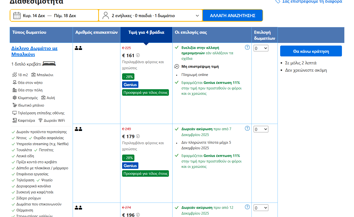 *Για να σας εμφανίζεται η τιμή που βλέπουμε, πρέπει να κάνετε σύνδεση στο site της Booking. Είναι δωρεάν και γίνεται απευθείας μέσω gmail.