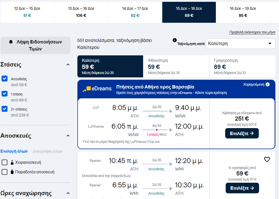 Μπείτε στο site της Skyscanner κι αναζητήστε τις παρακάτω πτήσεις: