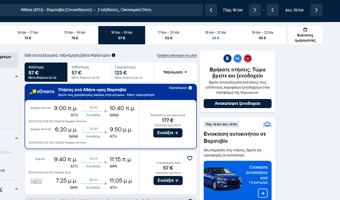 Μπείτε στο site της Skyscanner κι αναζητήστε τις παρακάτω πτήσεις: