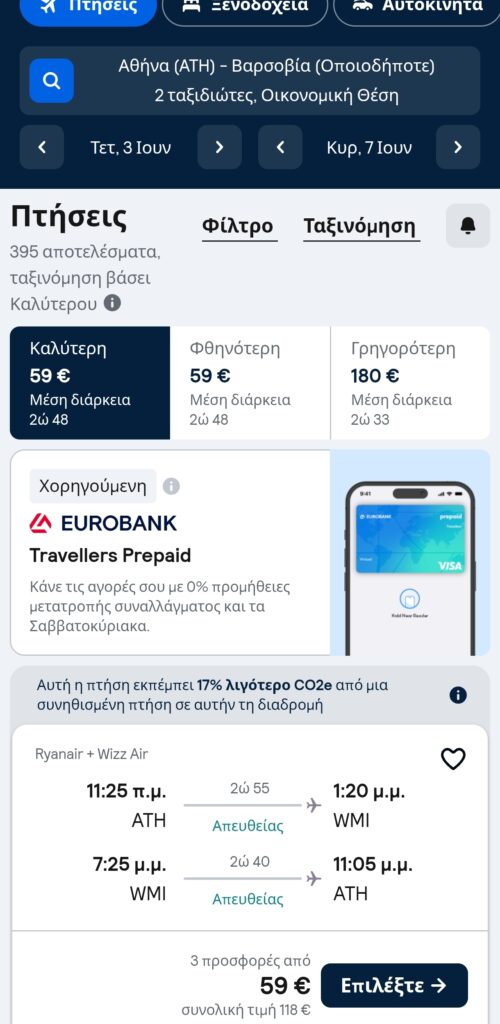 Οι πτήσεις είναι με Ryanair και Wizzair. Στο βασικό ναύλο περιλαμβάνεται τσάντα πλάτης.