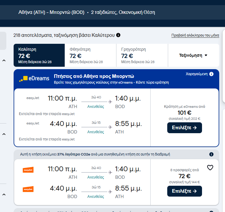 Η συνολική τιμή είναι 144€ με επιστροφή με Easyjet.