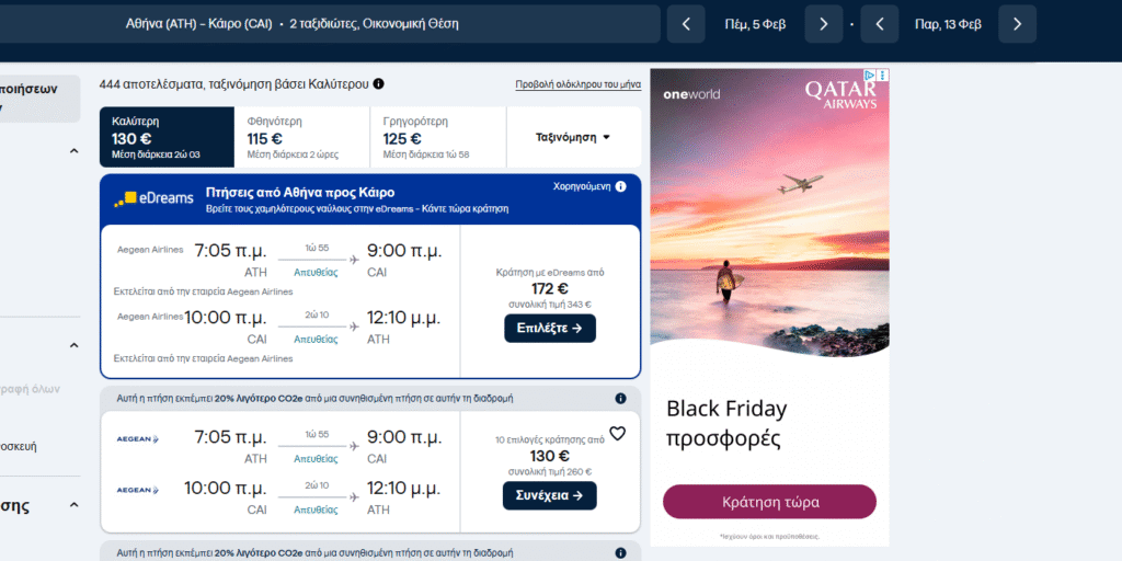 - Η παραπάνω τιμή ισχύει σήμερα (29/11/25) κι ενδέχεται να αλλάξει όσο περνάνε οι ώρες, αφού οι τιμές των αεροπορικών εισιτηρίων δεν παραμένουν σταθερές για πολλές ώρες.