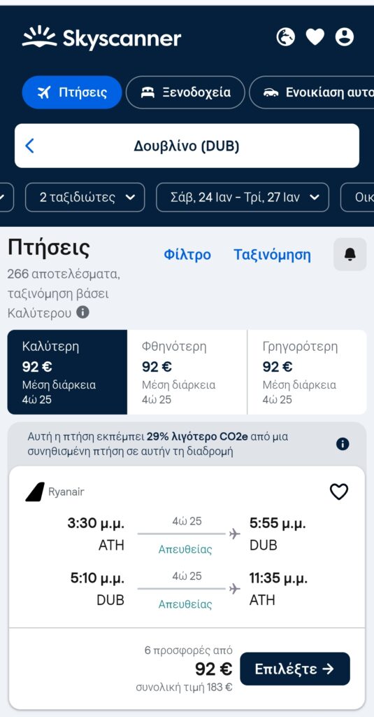 Η τιμή είναι μόλις 183€ με επιστροφή για δύο άτομα με Ryanair.