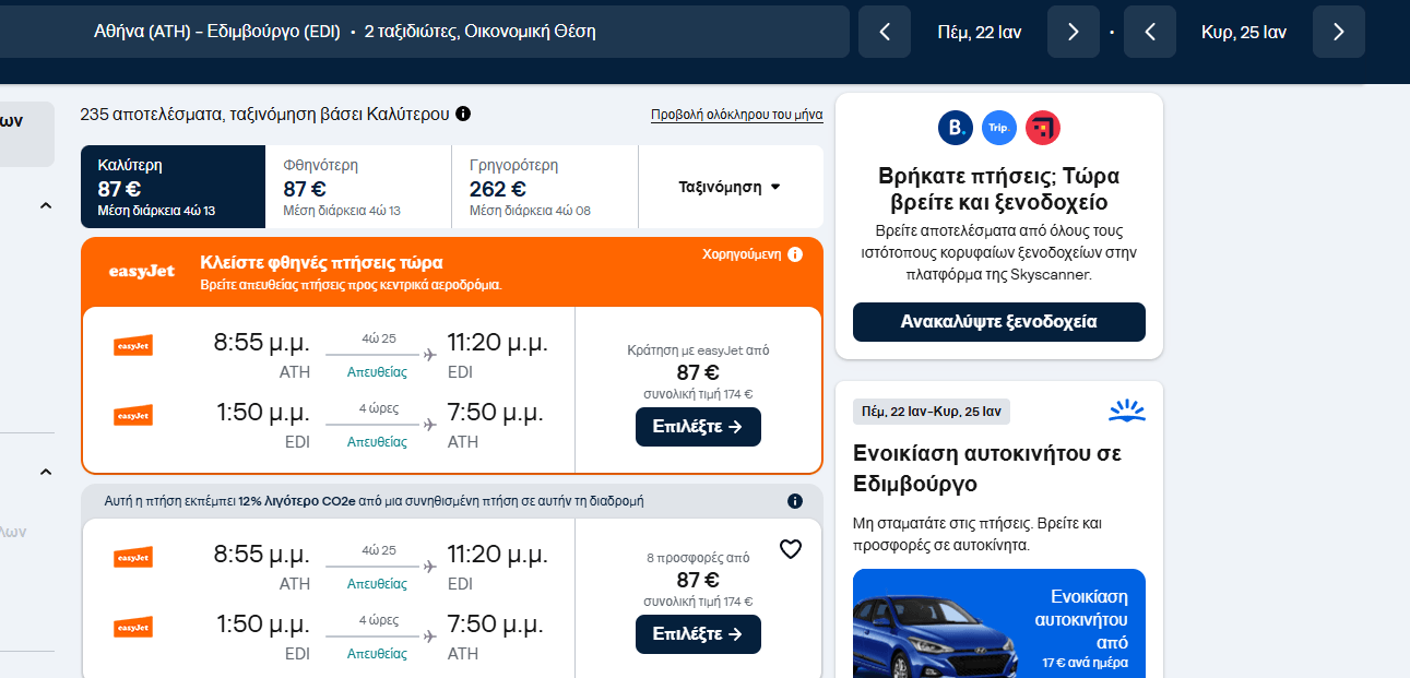Αεροπορικά εισιτήρια για το ταξίδι στο Εδιμβούργο