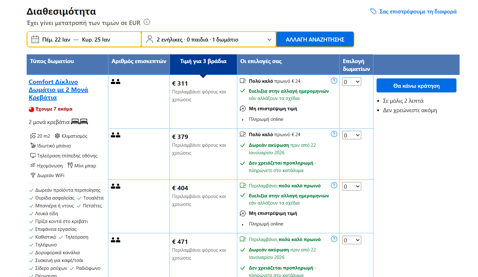 *Για να σας εμφανίζεται η τιμή που βλέπουμε, πρέπει να κάνετε σύνδεση στο site της Booking. Είναι δωρεάν και γίνεται απευθείας μέσω gmail.