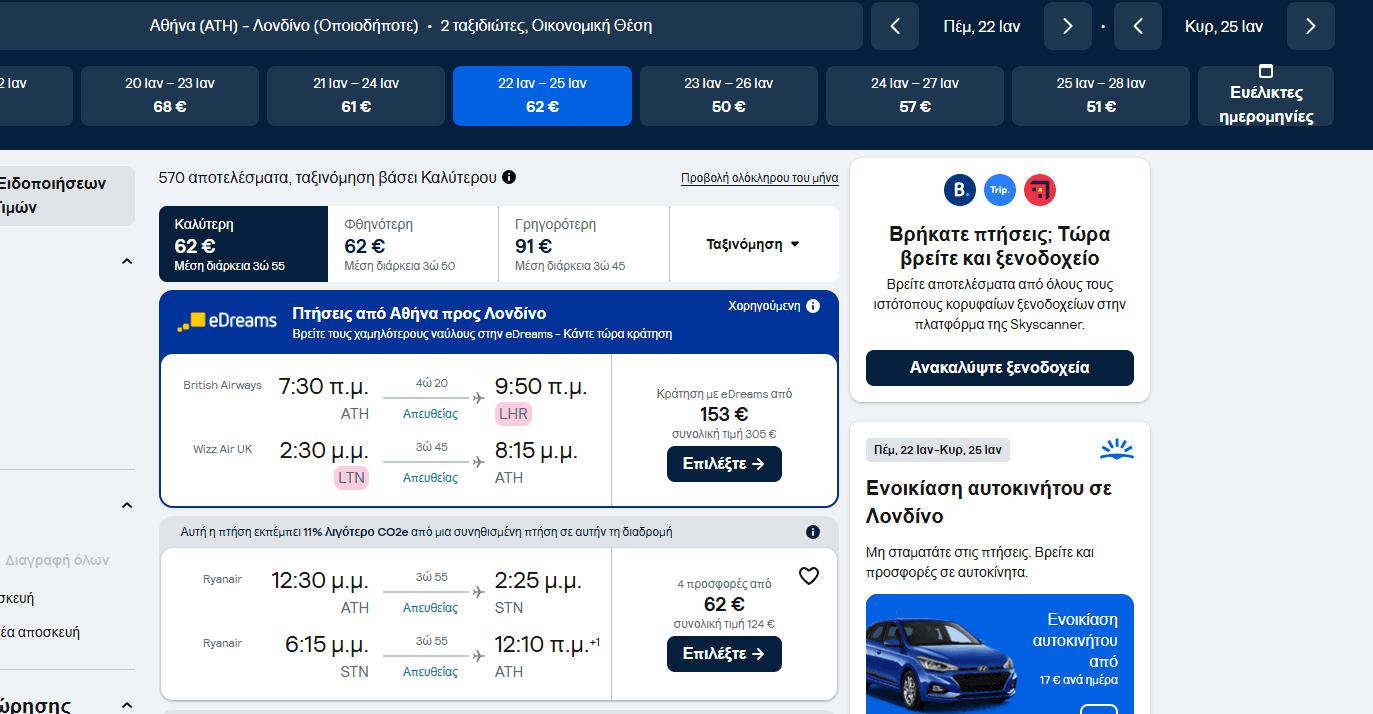 Μπείτε στο site της Skyscanner κι αναζητήστε τις παρακάτω ημερομηνίες: