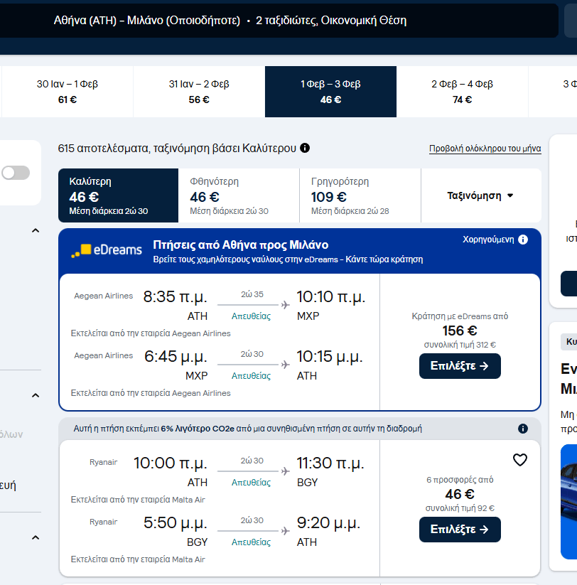 - Μιλάνο – Αθήνα 3 Φεβρουαρίου