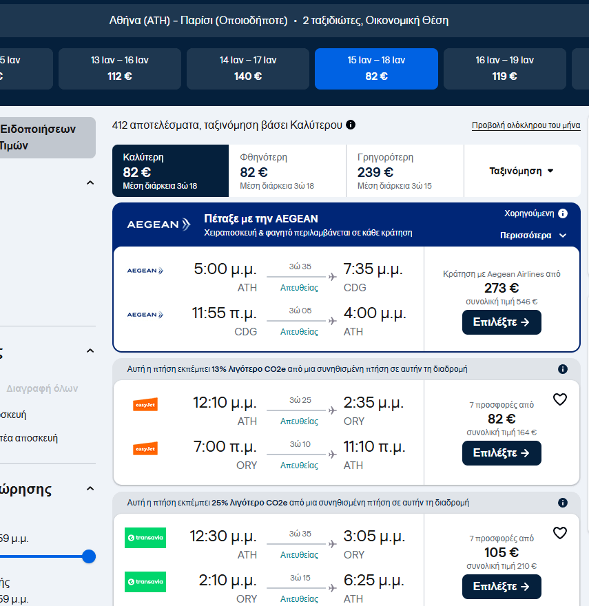Η συνολική τιμή είναι 210 ευρώ για δύο άτομα με επιστροφή με Transavia.