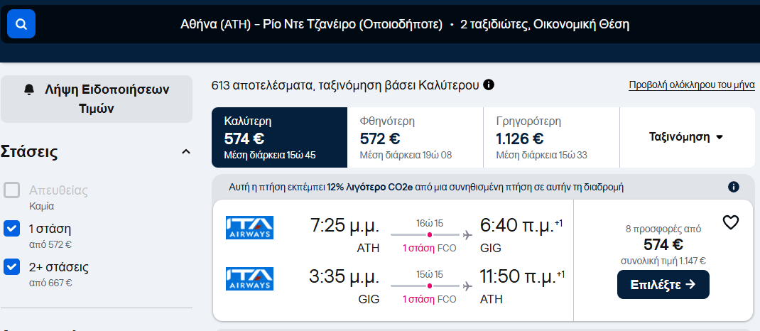 - Η παραπάνω τιμή ισχύει σήμερα (8/1/26) κι ενδέχεται να αλλάξει όσο περνάνε οι ώρες, αφού οι τιμές των αεροπορικών εισιτηρίων δεν παραμένουν σταθερές για πολλές ώρες.