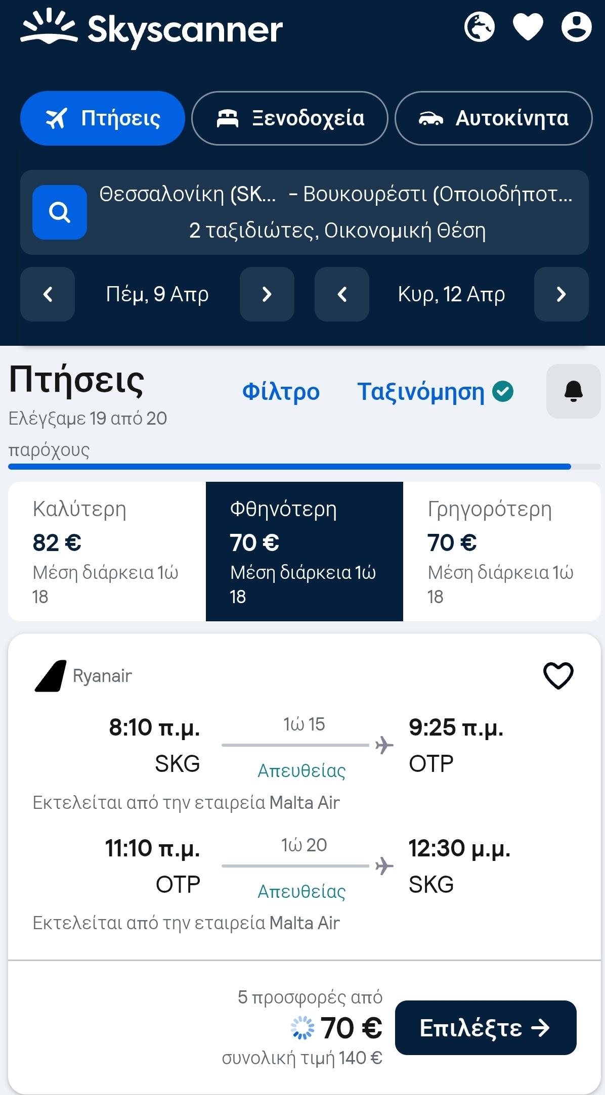 Μπείτε στο site της Skyscanner κι αναζητήστε τις παρακάτω πτήσεις: