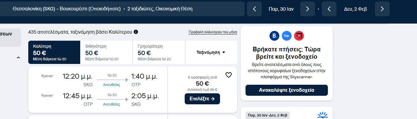 Μπείτε στο site της Skyscanner κι αναζητήστε τις παρακάτω πτήσεις: